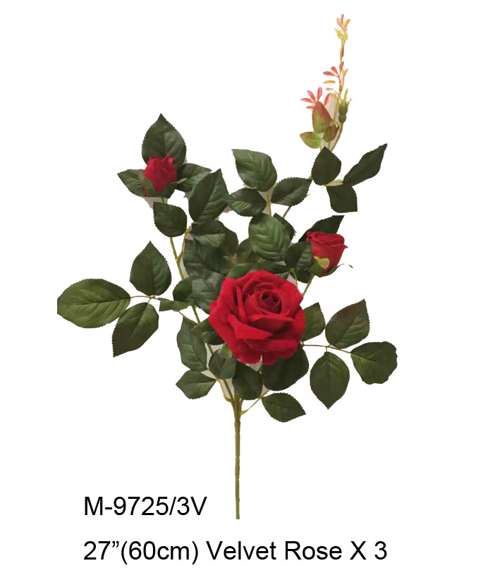 M-9725/3V - 27"(60cm) Velvet Rose X 3, 48/288 Pcs. 0.327cbm