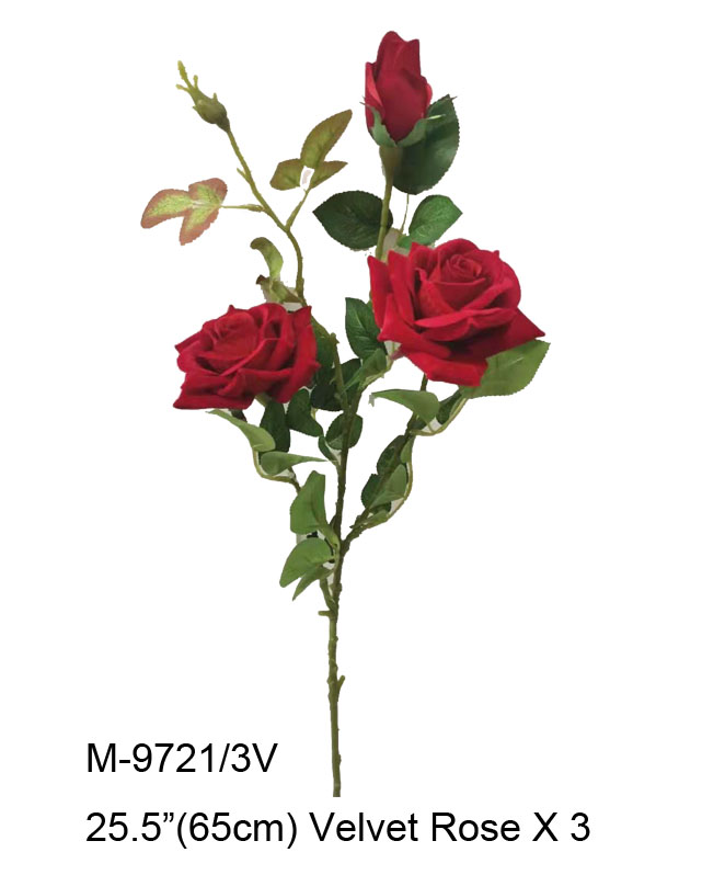 M-9721/3V - 25.5"(65cm) Velvet Rose X 3, 48/288 Pcs 0.265cbm