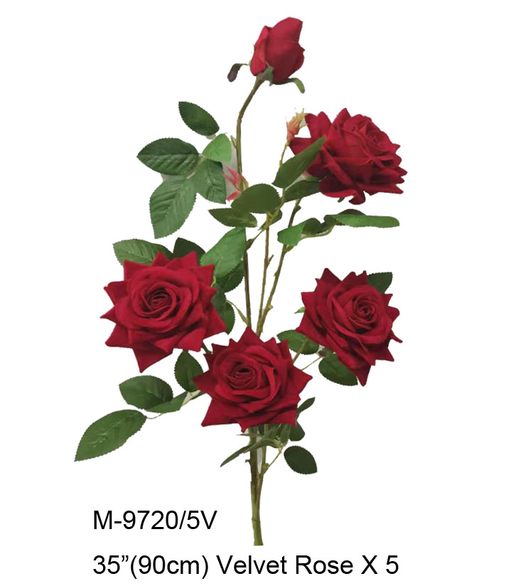 M-9720/5V - 35"(90cm) Velvet Rose X 5, 24/144 Pcs 0.351cbm