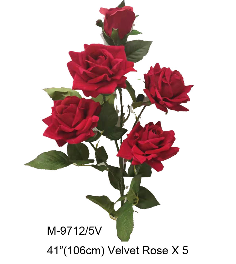 M-9712/5V - 41"(106cm) Velvet Rose X 5, 18/108 Pcs 0.43cbm
