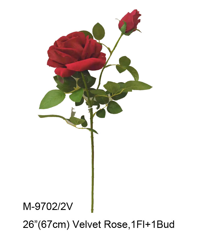 M-9702/2V - 26"(67m) Velvet Rose X 2, 48/288 Pcs, 0.33cbm