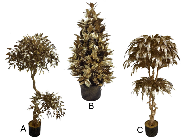 A = 1008-1176POTMET, 4.5'(137cm) French Ficus Tree, 1176 Lvs, Metallic, 0/2 Pcs. 0.140cbm / MOQ 50 pieces