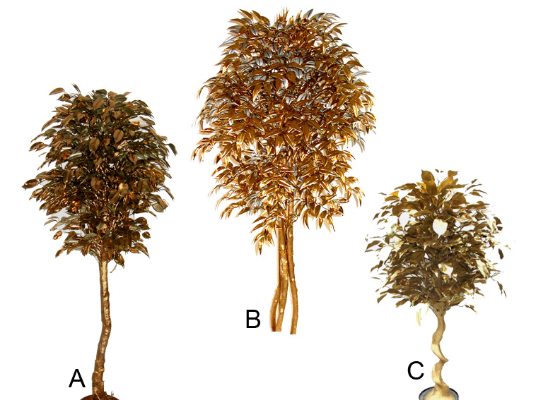 A = 915-896POTMET, 5'(150cm) Ficus Tree, 896 Lvs, Metallic, 0/2 Pcs 0.146cbm / MOQ 50 pieces