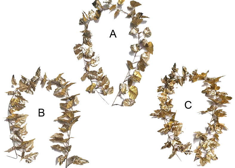 B = M-9814/67PLMET, 6'(180cm) Piggyback Garland, 67 Lvs, 24/96 Pcs 0.389cbm / MOQ 10 cartons/colour