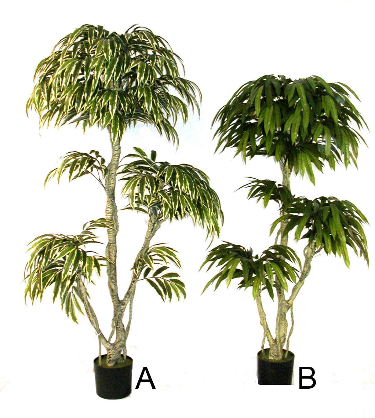 A = 1010-864PL, 6'(180cm) Slim Mango Topiary, 864 Lvs, 0/2 Pcs 0.199cbm / MOQ 50 pieces