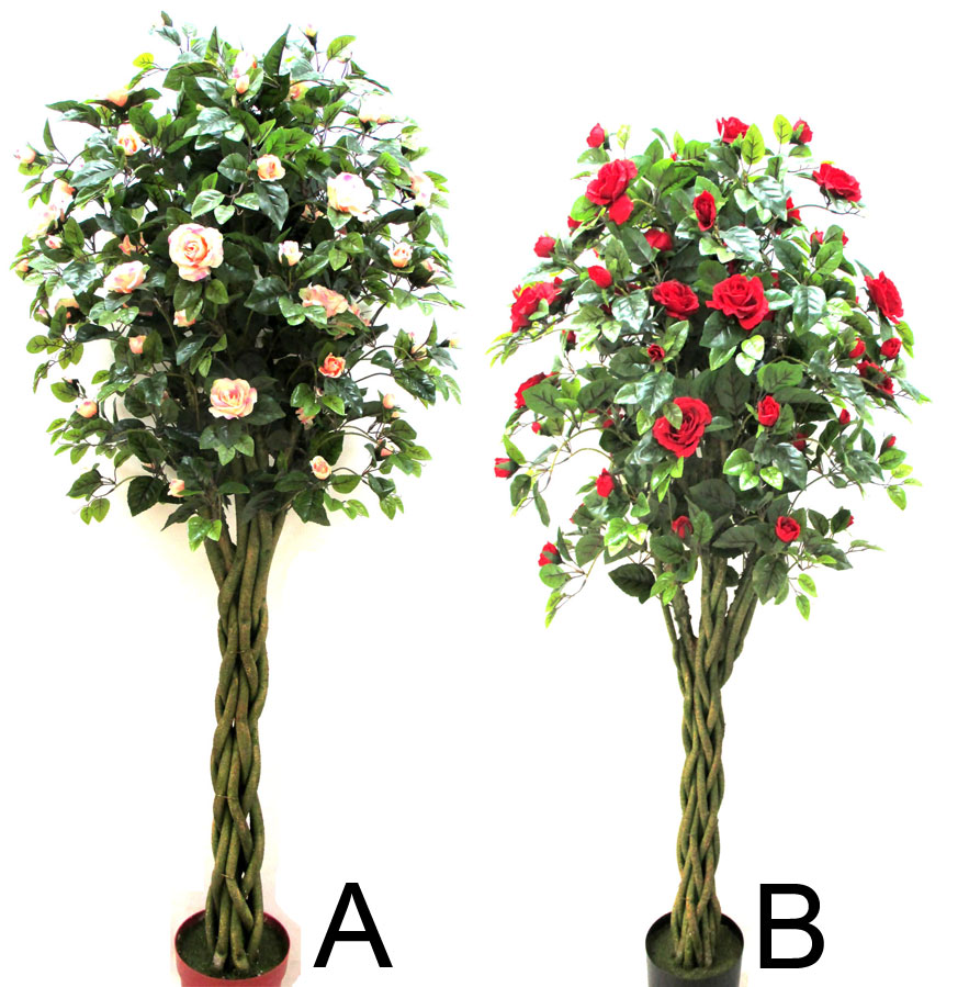 B = M-9052/5POT, 5'(150cm) Rose Topiary Woven Trunk, 0/2 Pcs 0.133cbm / MOQ 50 pieces