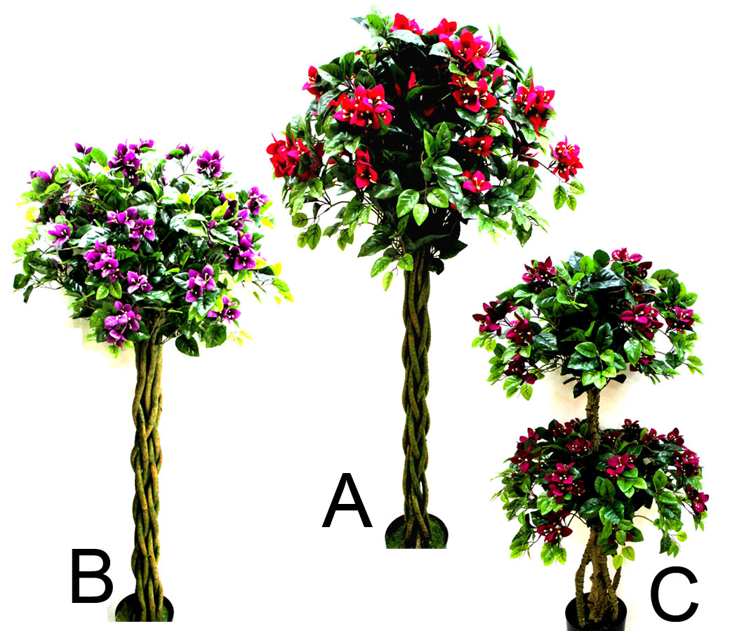 B = M-8881/5POT, 5'(150cm) Bongainvillea Topiary Woven Trunk, 0/2 Pcs 0.134cbm / MOQ 50 pieces